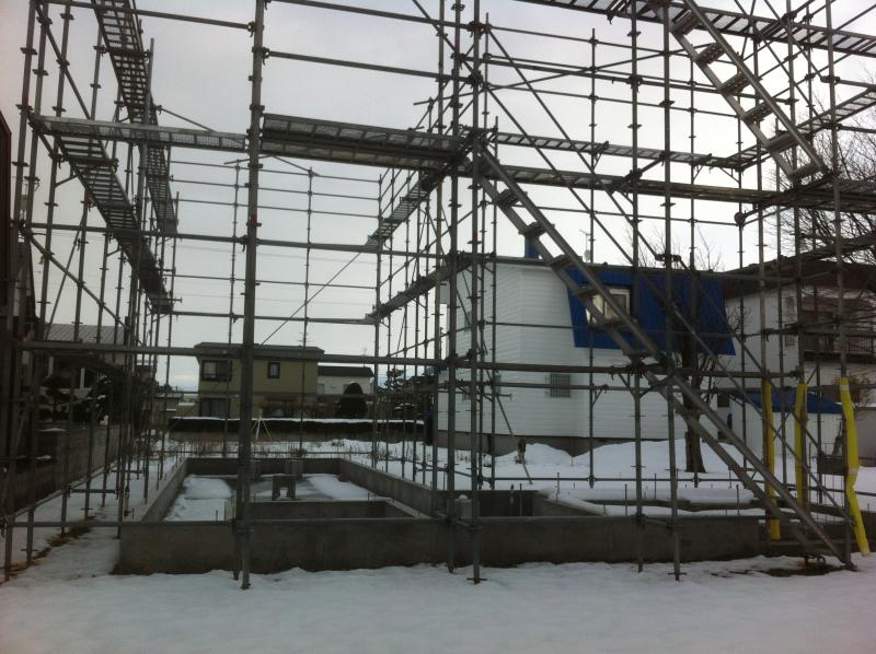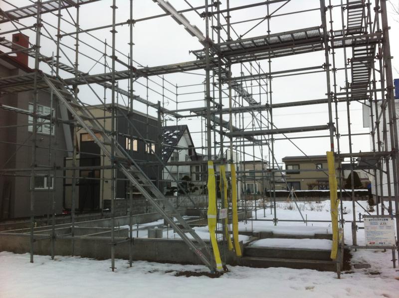 足場工事も終わり、来週後半に木工事が始まる予定です!