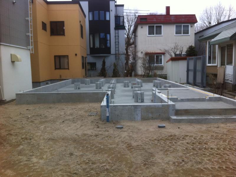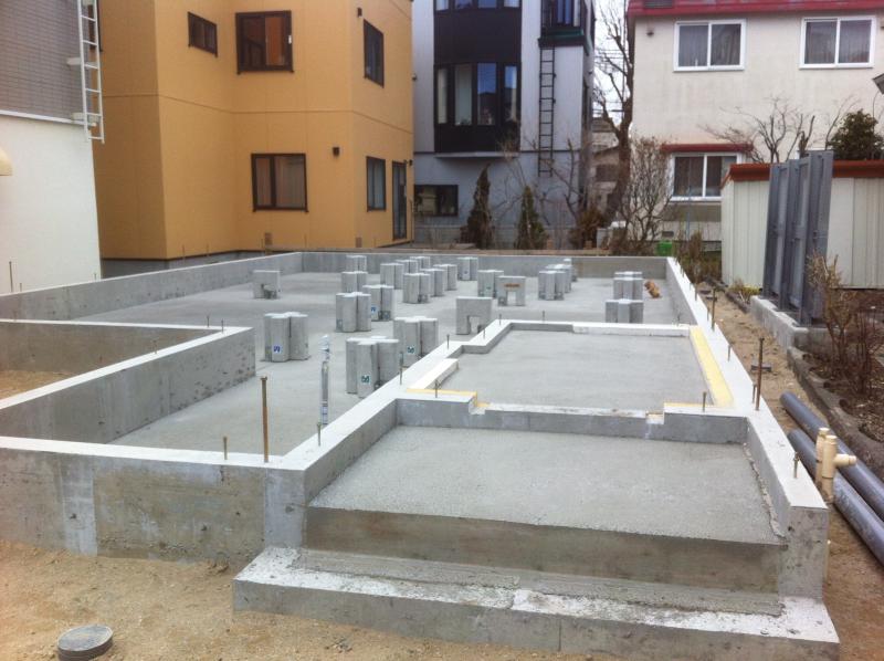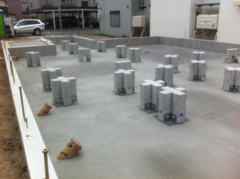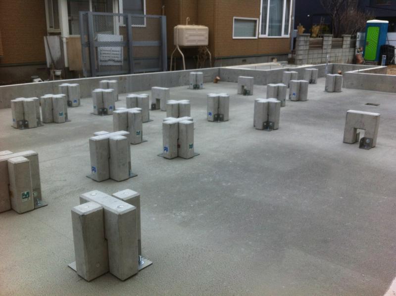 土間CON打設までが終わりグリッドポストを設置しました!