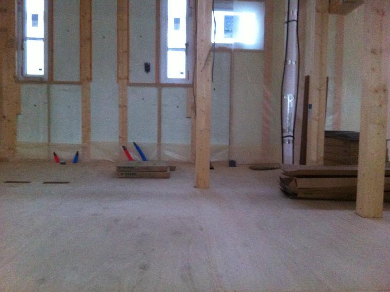 床の仕上げ材を貼っています!