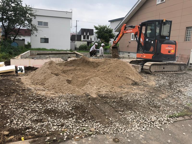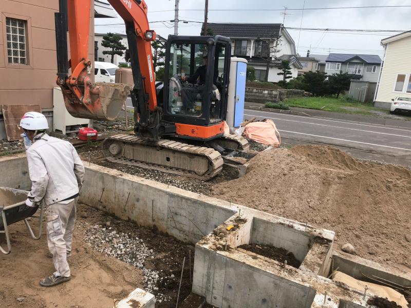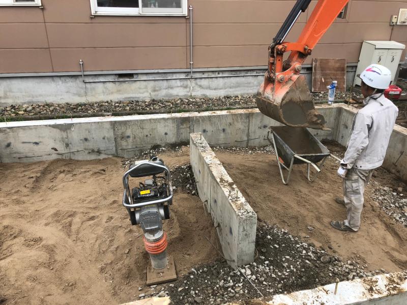 今は基礎を埋め戻す作業をしています!