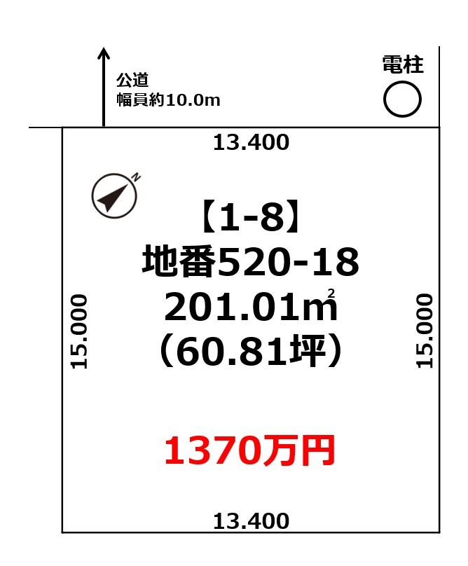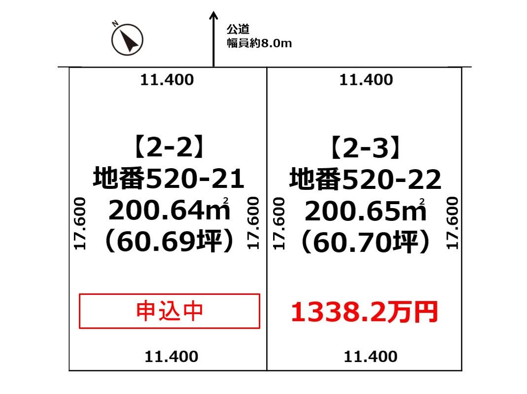 【1-2】北東幅員10.0mの公道に14.7m【1-8】北西幅員10.0mの公道に13.4m【2-2,3】北東幅員8.0mの公道に11.4m【3-3】北東幅員8.0mの公道に12.9m