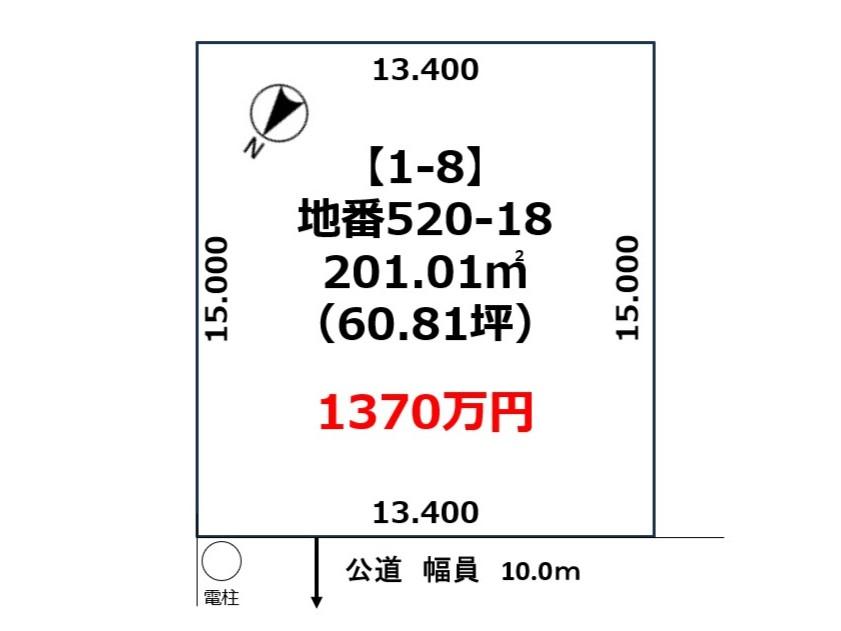 【1-2】北東幅員10.0mの公道に14.7m【1-8】北西幅員10.0mの公道に13.4m【3-3】北東幅員8.0mの公道に12.9m 【5-7】北東幅員8.0mの公道に11.0m