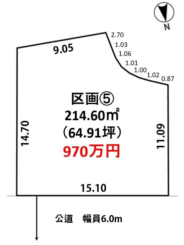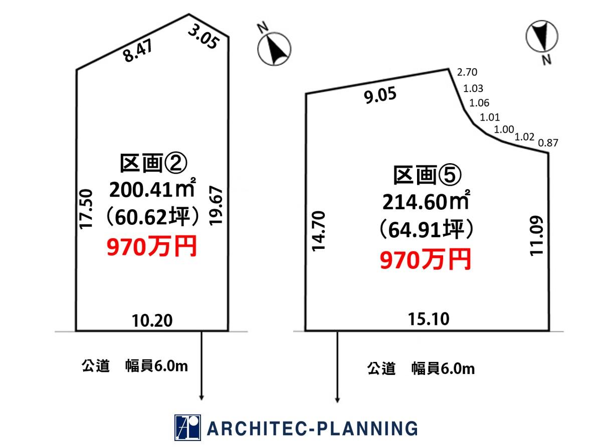 - ②南側幅員6.0ⅿの公道に10.20ⅿ接する⑤北側幅員6.0ⅿの公道に15.12ⅿ接する