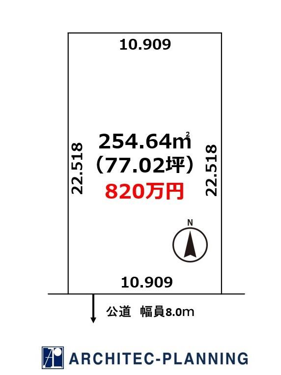 - 南側幅員8.0ⅿの公道に10.909ⅿ接する