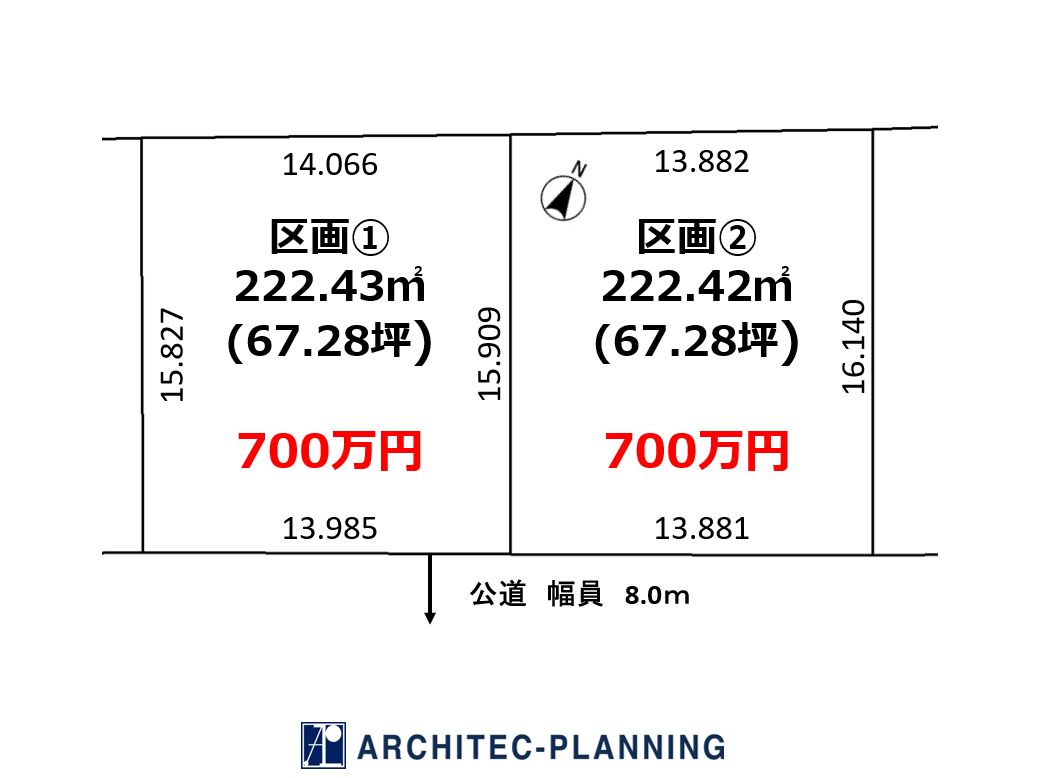 ※この土地は、土地売買契約締結後3か月以内に、㈱アーキテックプランニングと建物の建築請負契約を締結することを条件に販売します。