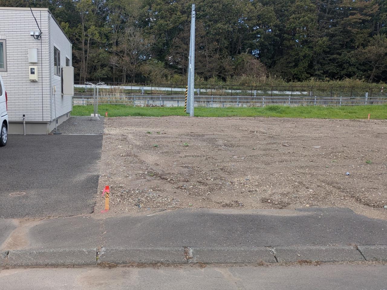 - ※現地向かって左側手前と奥の電柱は撤去、木製街灯柱はコンクリート製に交換し境界線へ移設、ゴミ収集BOXも敷地外へ移設予定