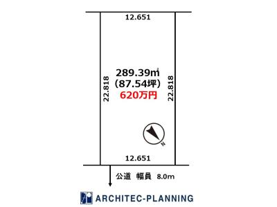 ※この土地は、土地売買契約締結後3か月以内に、㈱アーキテックプランニングと建物の建築請負契約を締結することを条件に販売します。