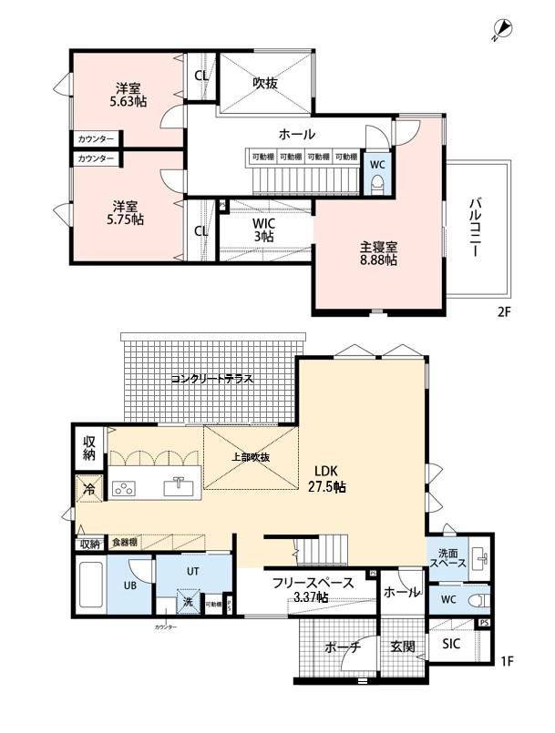 ■2面採光、約27帖上部吹き抜けの解放的なリビングルーム