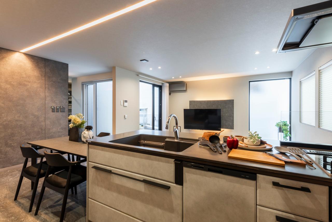 ■ホールやダイニング一面には意匠性の高い「アイカセラールセレント」採用