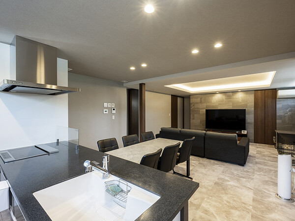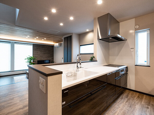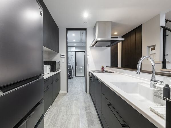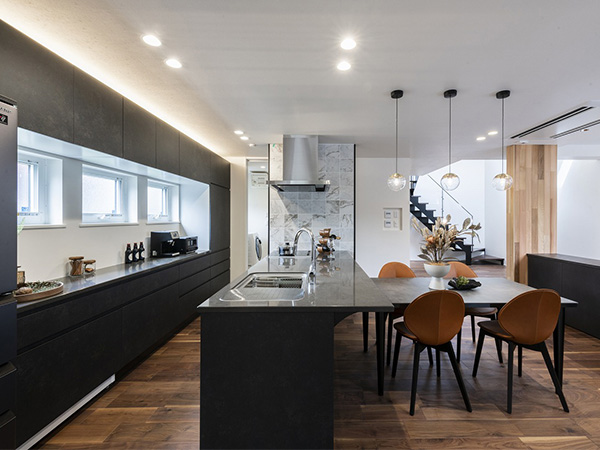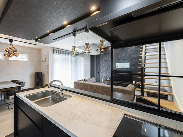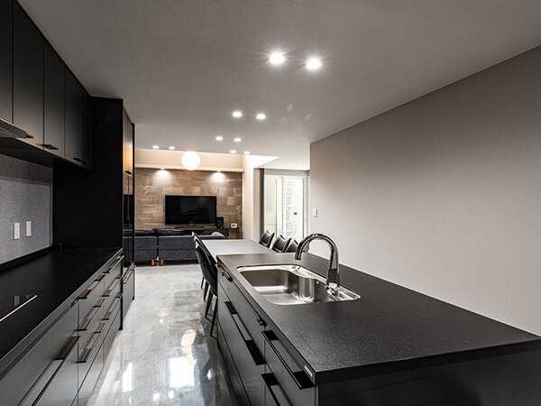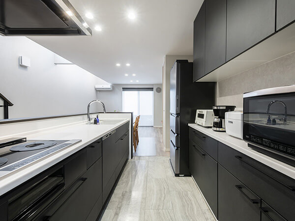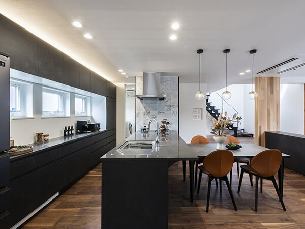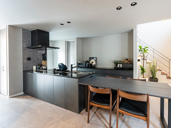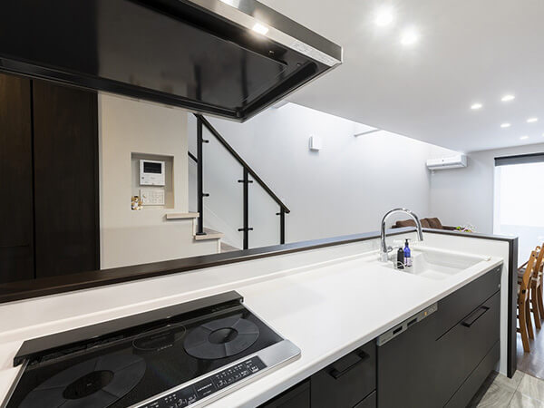 おしゃれで機能的なフルフラットキッチン。