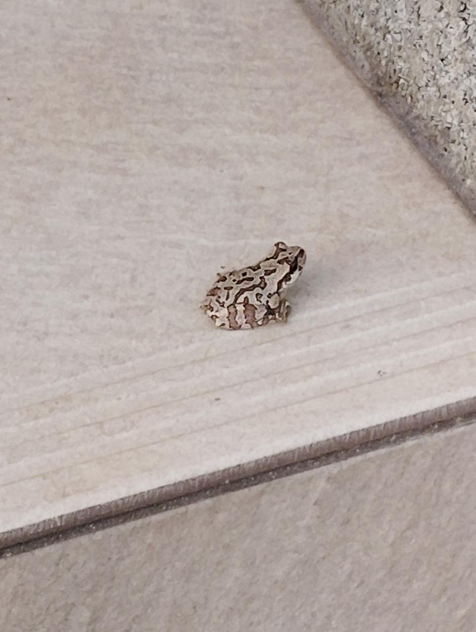 足元見て歩いていると、なにか ぴょこぴょこ いると思ったら小さなカエルで、息子と一緒にいるとわざわざ