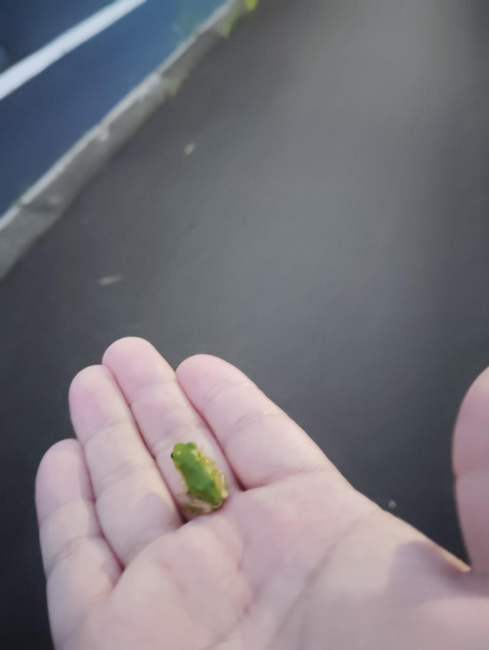 写真は、道中拾ったカエルと二枚目は 朝一玄関前にいたカエルでした。