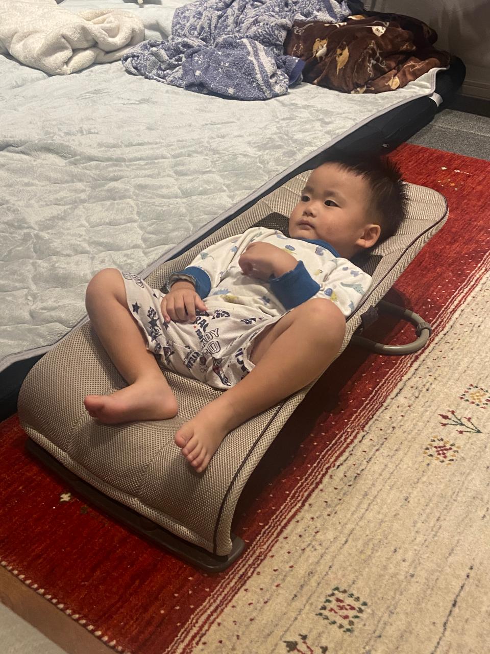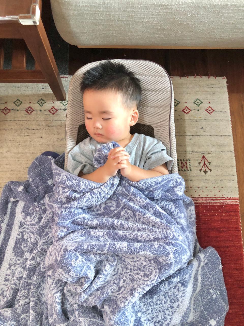 ホントにバウンサーで寝たと思ったら謎の合掌w