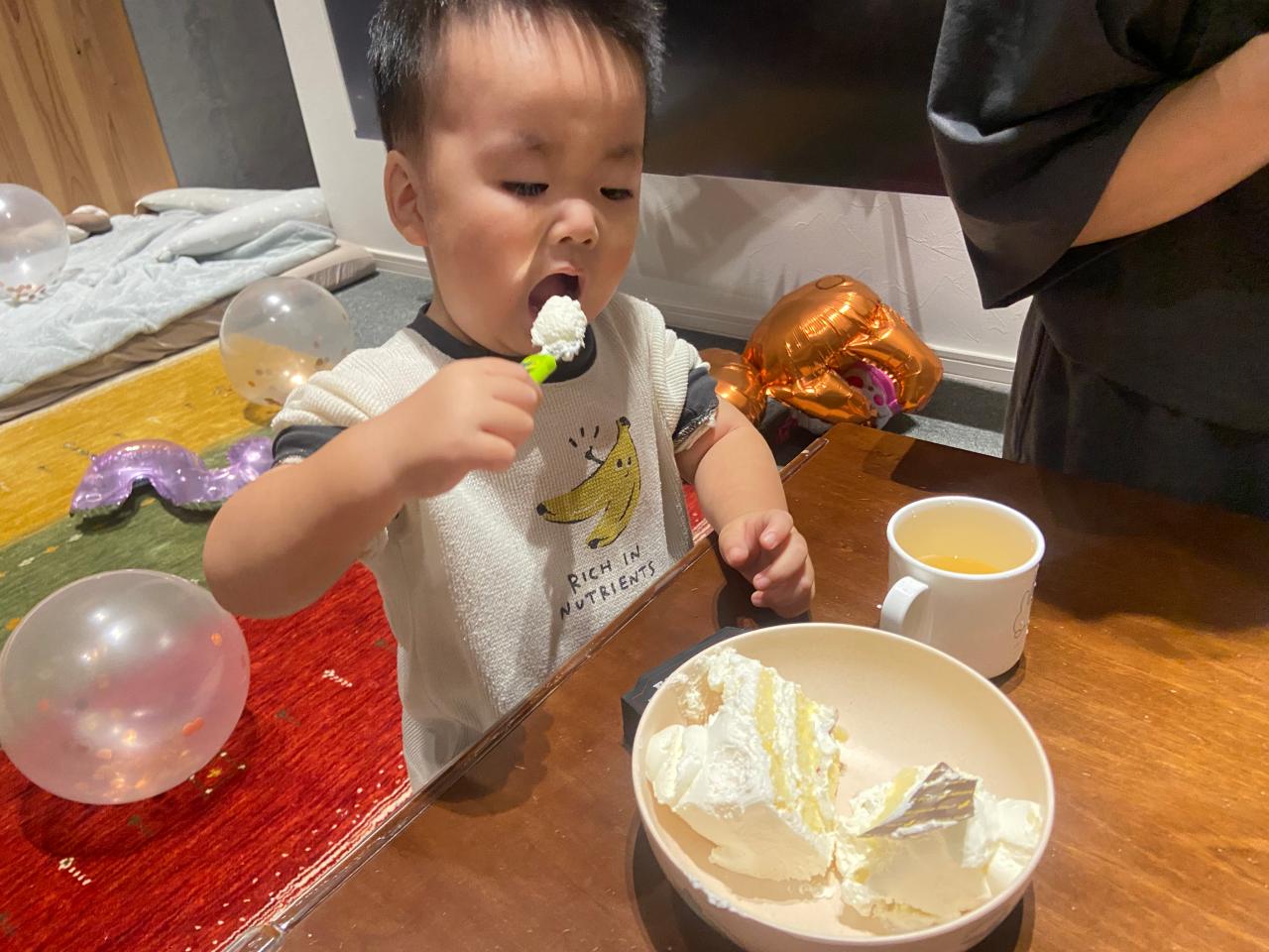2歳の誕生日の料理とケーキ一緒に爆食です