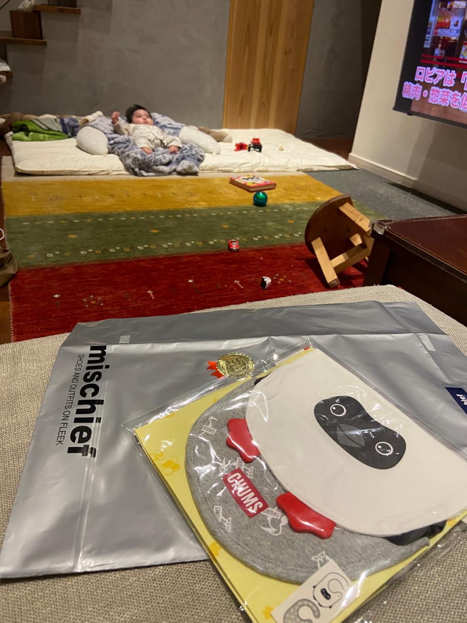 年末トチザキの兄貴がクリスマスだからとジュニア(弟)によだれかけを送ってきてくれました