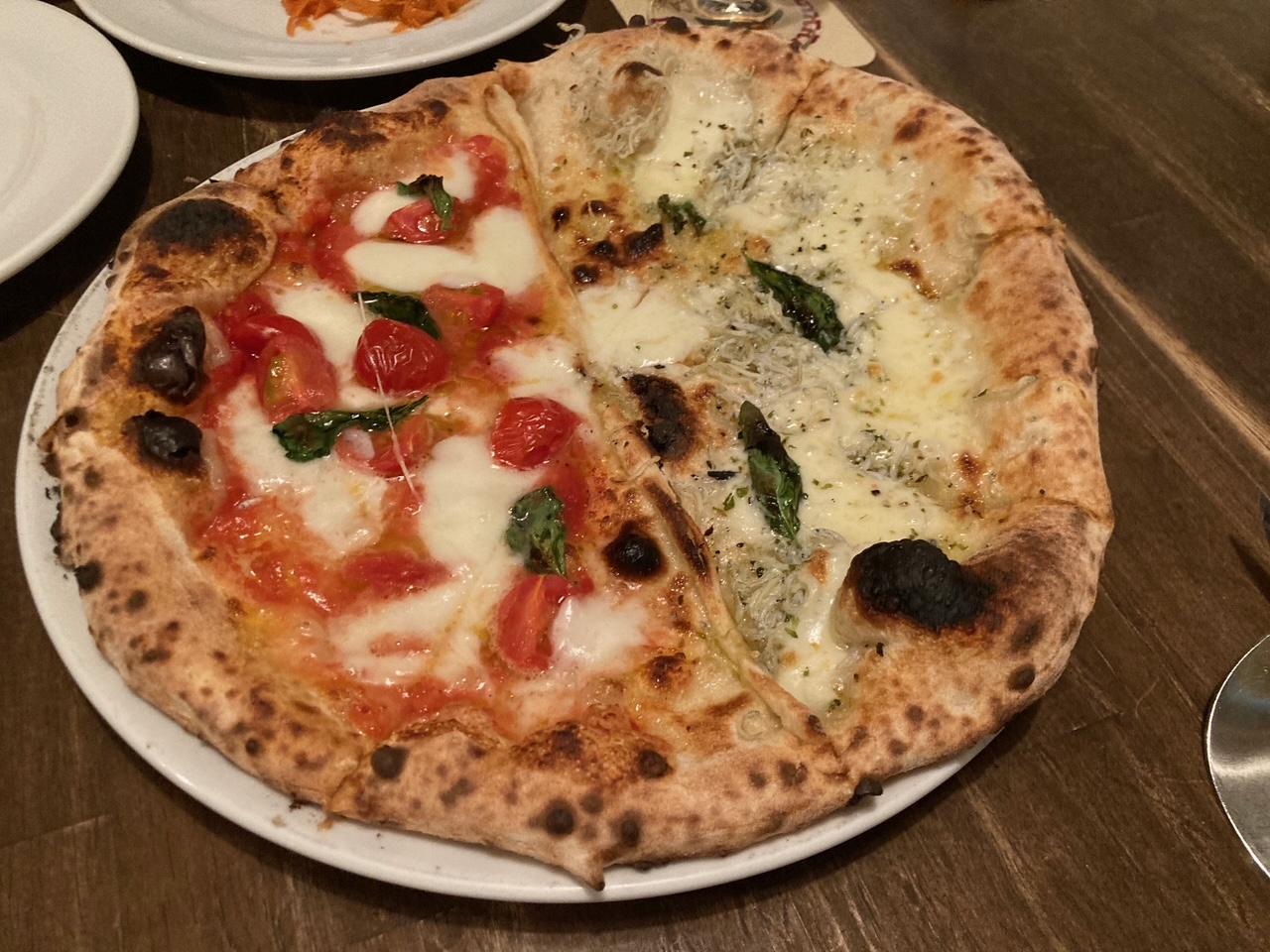 マルゲリータとしらすのピザ ハーフ&ハーフ