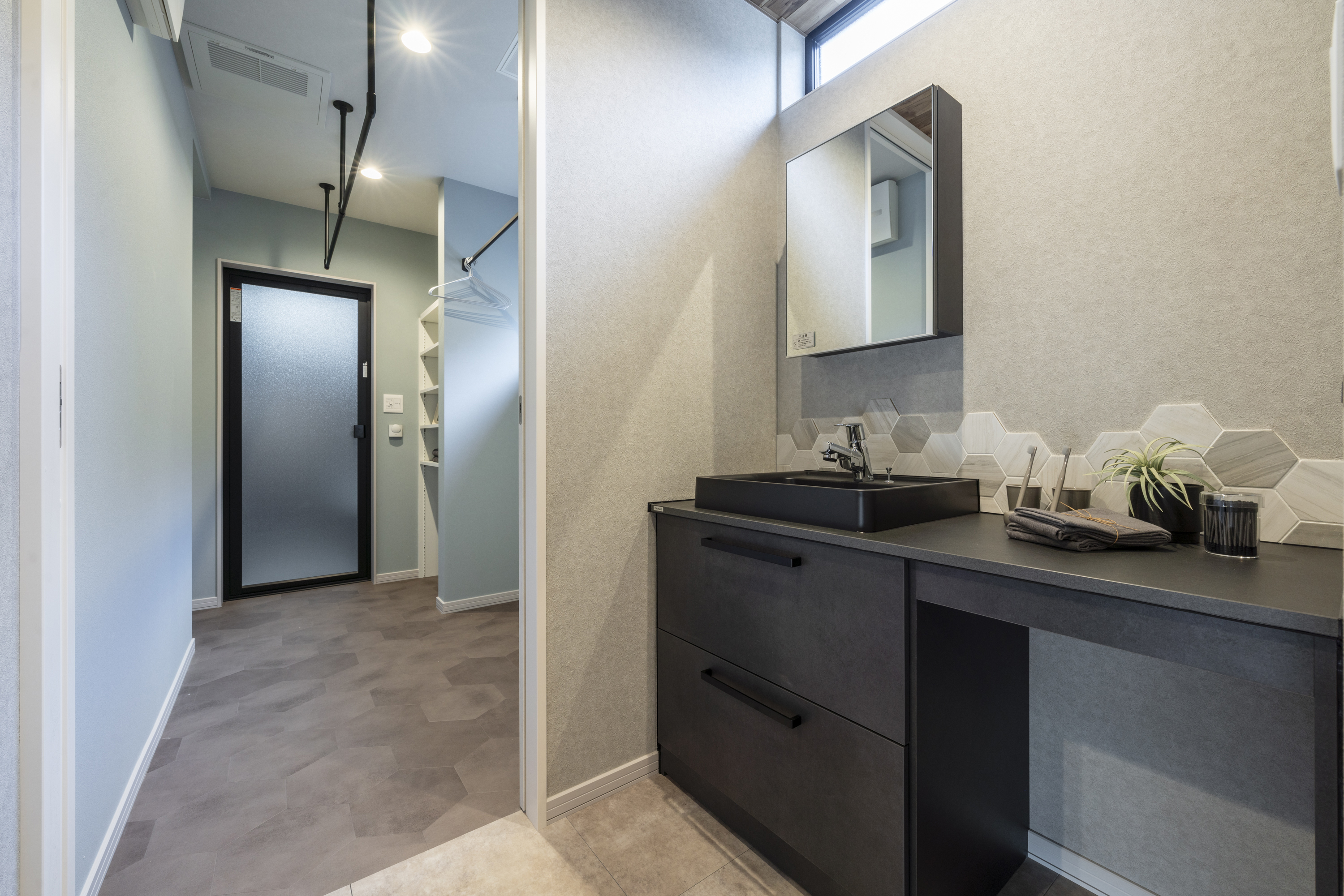 ※当社施工事例(UTスペースと分けられた洗面スペース)